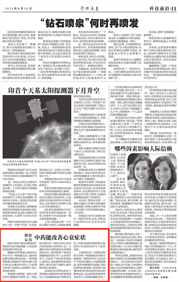 发布时间:2025-09-01 | 发布者: 东东工作室 | 浏览次数: 次8月30日,《参考消息》刊发文章《研究认为中药能改善心衰症状》。
