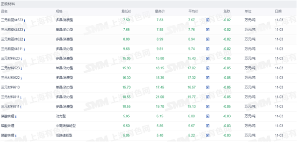 发布时间:2025-09-01 | 发布者: 东东工作室 | 浏览次数: 次证券之星新能源车行业周报:据上海有色网,本周五SMM磷酸铁价格为1.17-1.23万元/吨,均价1.20万元/吨,较上周五跌100元/吨。本周,磷酸铁价格下跌。因下游订单变数较大,磷酸铁月度谈单较谨慎,为获得市场份额,磷酸铁厂被迫让“利”出售。本周,原料价格稳定,企业生产成本稳定,相对销售价格,成本高企。原料端,磷酸铁按需生产,新产线集中在年底前调试完毕,市场供应量充足。需求方面,四季度需求惨淡,对磷酸铁的需求量有所减少。随着月度谈单的结束,散单的成交亦趋于平淡,预计,下周磷酸铁价格持稳。