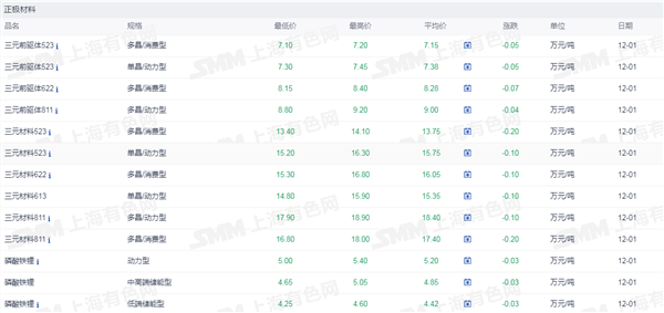 正极材料价格