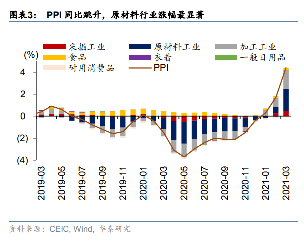 红塔证券宏观团队李奇霖和孙永乐则表示,国际大宗商品上涨带动国内原材料价格上涨是确定的,国内“碳中和”政策下,粗钢等限产,钢材价格会有很大上涨空间。“往后看,PPI还有一定的上行空间,预计高点可能会在5、6月份。”