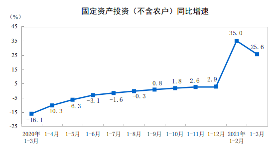 继续高增长!中国1-3月城镇固定资产投资同比增长25.6%