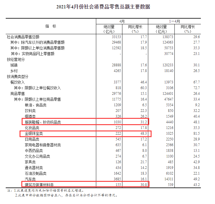 转载请标注:东东工作室——继续复苏!中国4月社会消费品零售总额同比增长17.7%