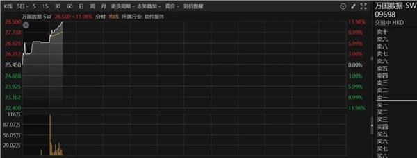 港股AI概念股走强,美图公司高开14.92%、截至发稿,万国数据-SW涨逾11%、阿里巴巴-W涨超1%。