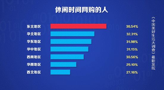 这一年,人们大半时间都憋在家里,东北人的购物热情反倒被充分激发出来。他们的休闲时间,被“网购”牢牢霸占,网购的时间也在七大区中位居榜首。