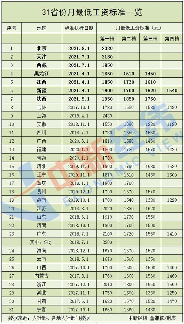 中新经纬客户端梳理发现,年内,包括北京在内,天津、江西、黑龙江、陕西、新疆、西藏陆续上调最低工资标准。
