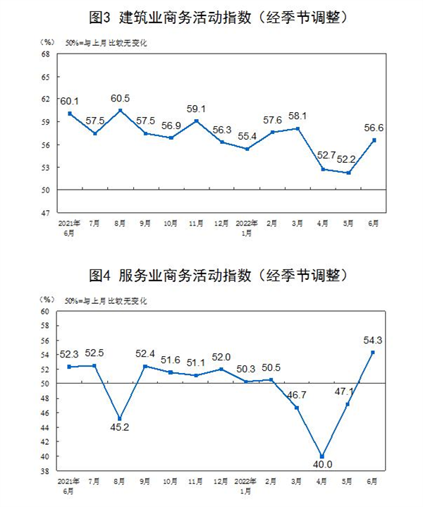 中国6月份制造业采购经理指数50.2,预期50.5;前值49.6。6月份非制造业采购经理指数54.7,预期50.5;前值47.8。6月综合PMI54.1,前值48.4。
