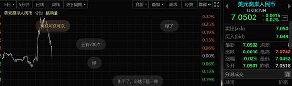 原因可能还是人民币贬值。昨晚,离岸人民币大跌近500点,今天早上再跌近200点。从走势看,若无强大的买盘力量突然出现,目前很难扭转贬值势头。这种力量曾在去年11月份出现过。有分析人士认为,空头预期有可能随时被扭转。就在即将发稿之际,人民币果然迎来了多头的攻击,贬值幅度快速萎缩。