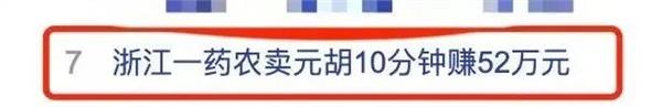 发布时间:2025-09-01 | 发布者: 东东工作室 | 浏览次数: 次6月24日话题#浙江一药农卖元胡10分钟赚52万元#,登上热搜,引发关注