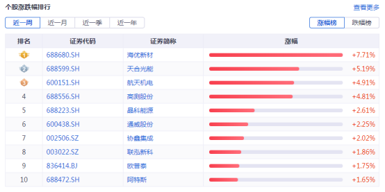 发布时间:2025-09-01 | 发布者: 东东工作室 | 浏览次数: 次证券之星光伏行业周报:中国有色金属工业协会硅业分会数据显示,本周国内硅料市场延续涨势,其中N型硅料涨幅超过P型硅料。中原证券最新观点指出,预计随着产业链上游价格逐步企稳,光伏下游价格将趋于稳定,从而带动下游装机需求。宏观方面,国家发改委等六部门文件指出,加强传统能源与新能源综合开发利用推动煤电、气电、风光电互补。企业方面,协鑫集成定增58亿加码电池片储能,爱旭股份定增60亿加码N型电池。