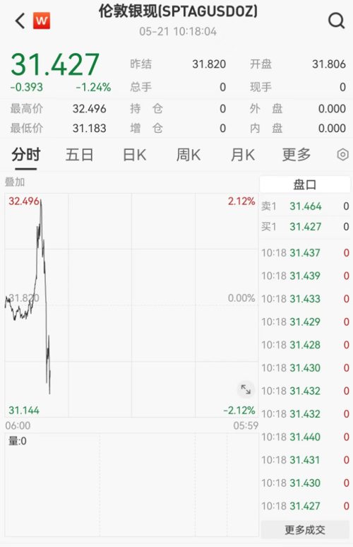 另外,现货黄金、白银均出现跳水现象。伦敦金现小幅跳水,伦敦银现跌超1%,此前盘中涨超2%。COMEX黄金走低,COMEX白银跌超2%。