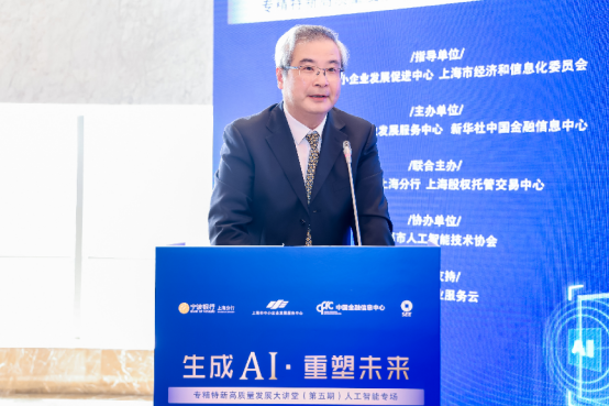 发布时间:2025-09-02 | 发布者: 东东工作室 | 浏览次数: 次3月19日下午,以“生成AI·重塑未来”为主题的专精特新高质量发展大讲堂(第五期)人工智能专场在“东方蓝宝石”中国金融信息中心成功举办。本期讲堂在中国中小企业发展促进中心、上海市经济和信息化委员会指导下,由上海市中小企业发展服务中心、新华社中国金融信息中心联合宁波银行上海分行、上海股权托管交易中心共同主办,上海市人工智能技术协会协办,上海市企业服务云特别支持。