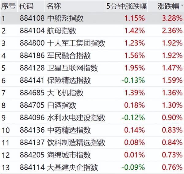 4月22日上午,国防军工板块开盘走高,中船系、航母、军民融合等指数涨幅居前。