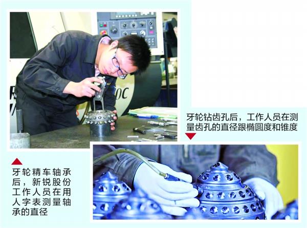 在苏州新锐合金工具股份有限公司,一款圆形齿状部件吸引了证券时报记者目光。这款具备“攻坚啃硬”能力的产品,被称为“工业牙齿”,安装在钻头上,可以凿到地下几十米至几万米,是矿山爆破的必需品。