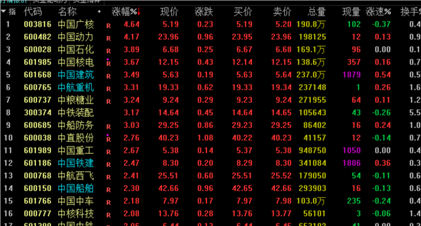 发布时间:2025-09-02 | 发布者: 东东工作室 | 浏览次数: 次7月24日,中字头股票午后走高,中国广核、中国动力涨超4%,中国石化、中国核电、中国建筑、中航重机、中粮糖业、中铁装配涨超3%。